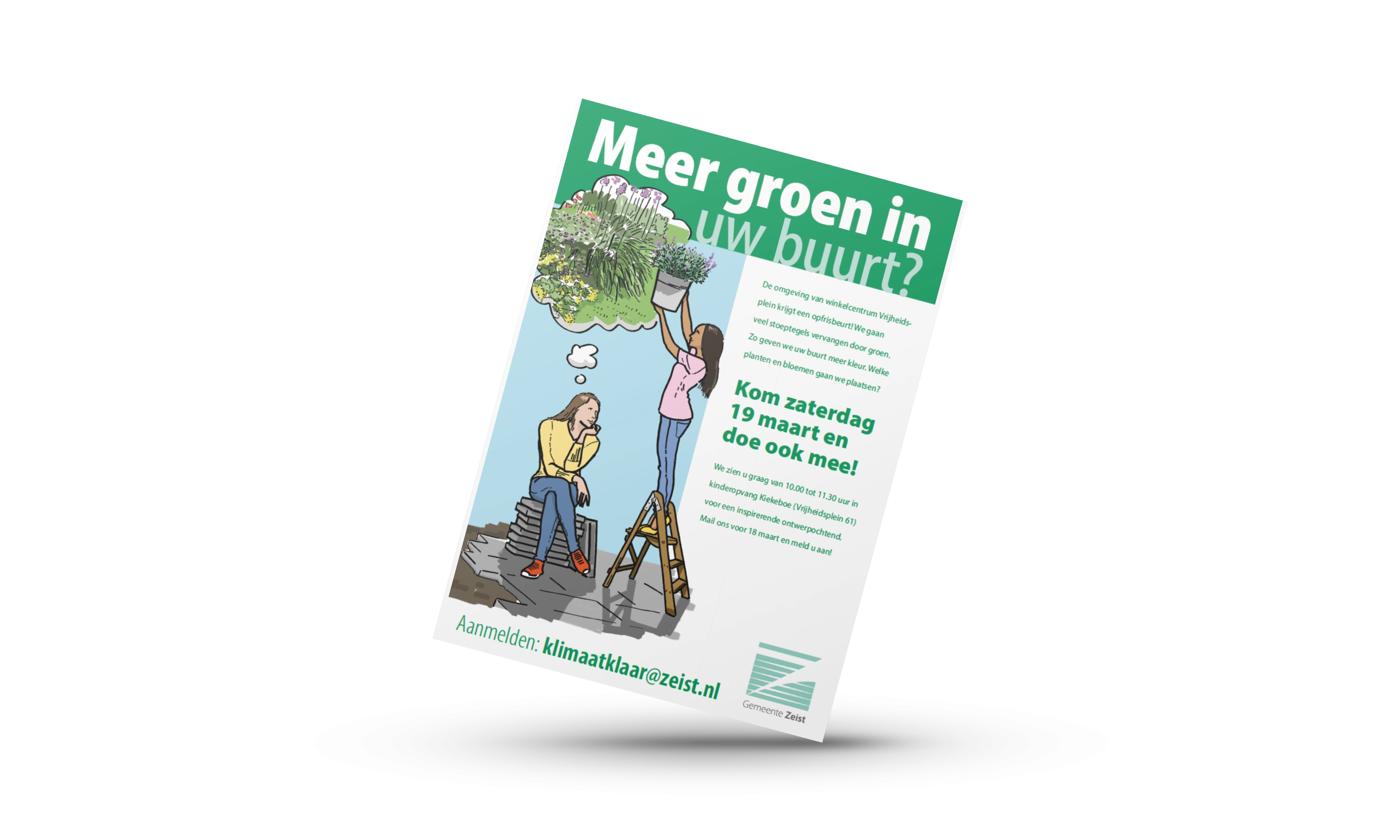 Gemeente Zeist streeft ernaar klimaatbestendig te zijn. Dat kan de gemeente niet alleen. Ongeveer de helft van de ruimte is in handen van particulieren. De gemeente vroeg ons daarom om de inwoners van Zeist te activeren om zélf klimaatbestendige maatregelen te nemen.