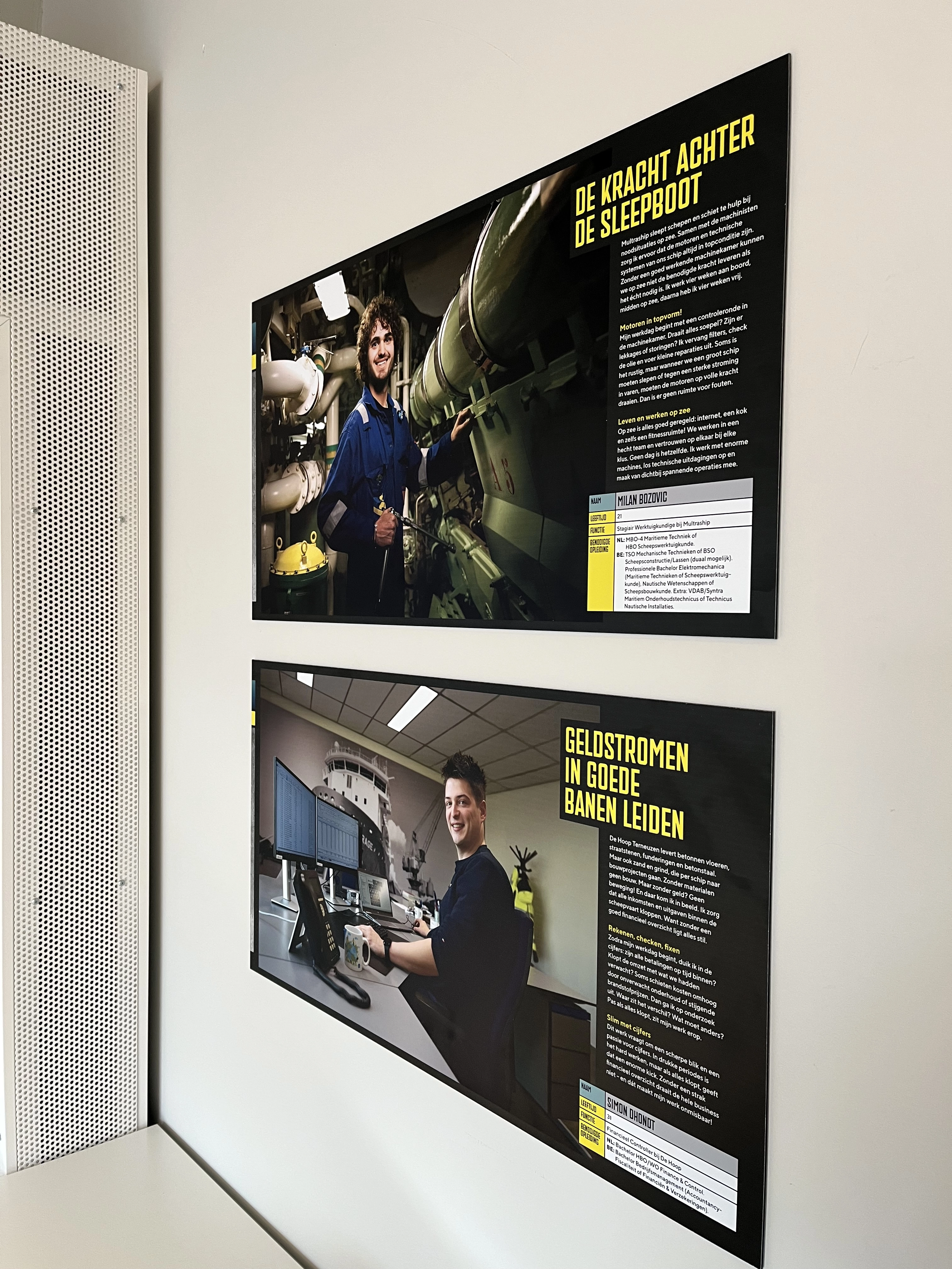Interviews met medewerkers brengen het werken in de haven tot leven. Fotografie en vormgeving geven de route een stoere, eigentijdse uitstraling die aansluit bij de leefwereld van jongeren.