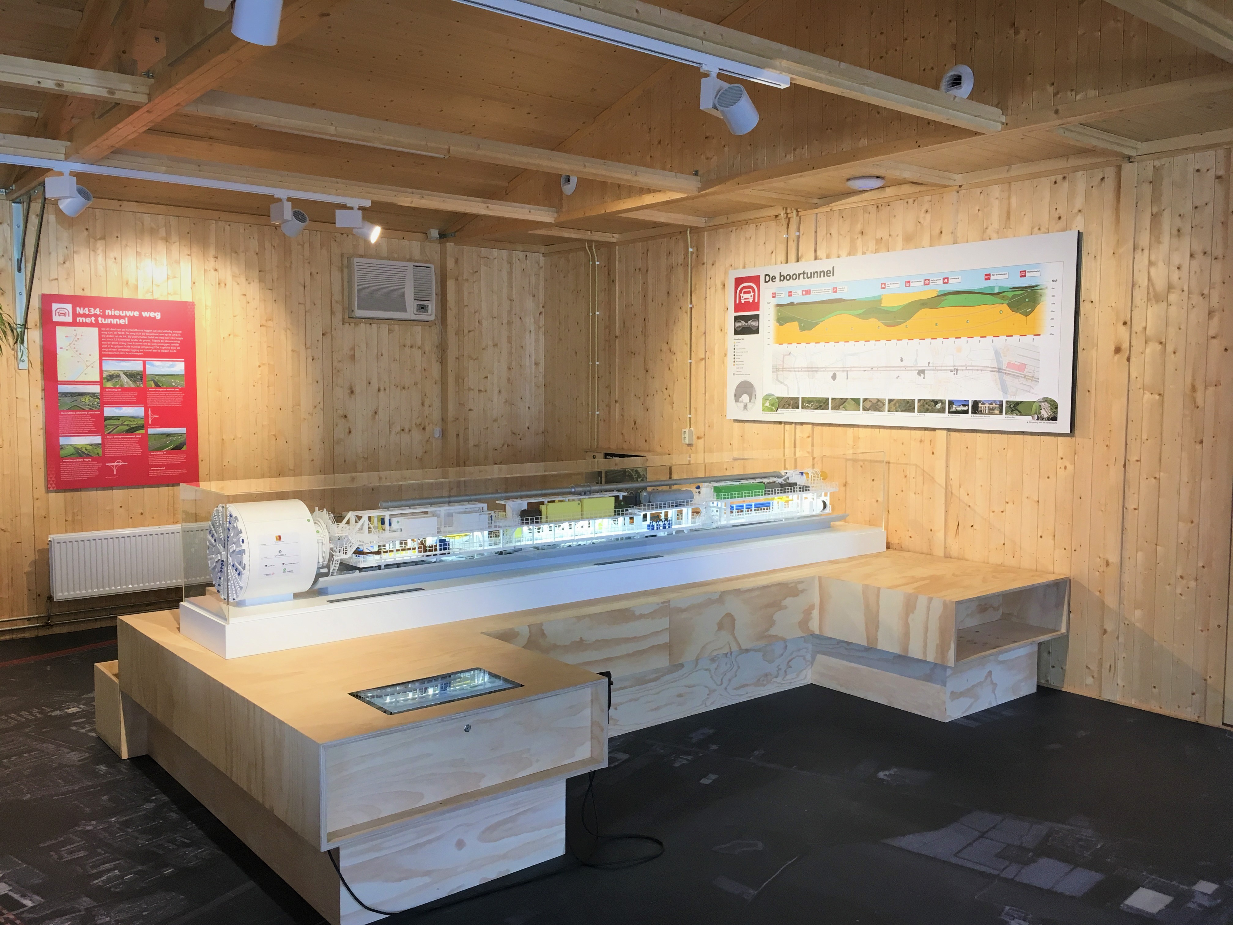 We gaven de RijnlandRoute een herkenbare plek in de regio: een informatiecentrum waar iedereen terechtkon met vragen, zorgen of nieuwsgierigheid. Er was informatie over alle drie de deelprojecten van de RijnlandRoute: de N434, de N206 ir. G. Tjalmaweg in Katwijk en de N206 Europaweg in Leiden. Bezoekers kregen uitleg aan de balie, konden kaarten tot op huisniveau bekijken en zagen met eigen ogen hoe de tunnel werd gebouwd. Een maquette van de boormachine, een echt tunnelsegment en een uitkijktoren bij de startschacht maakten het verhaal tastbaar. Er was een aparte archeologische schatkamer met vondsten uit het gehele projectgebied. En dankzij een vloerkaart werd duidelijk waar de drie deelprojecten zich bevonden en waar ze op elkaar aansloten.